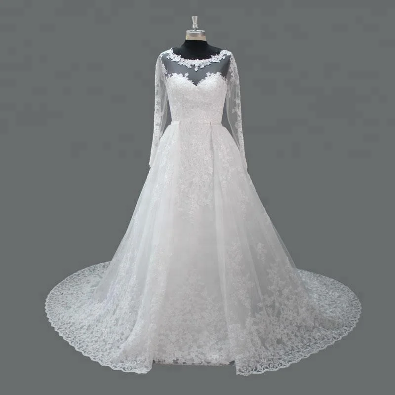 Contoh Nyata Scoop Leher Lengan Panjang Lace Mermaid Muslim Wedding Dress Dengan Dilepas Kereta Buy Gaun Pengantin Muslim Gaun Pengantin Mermaid