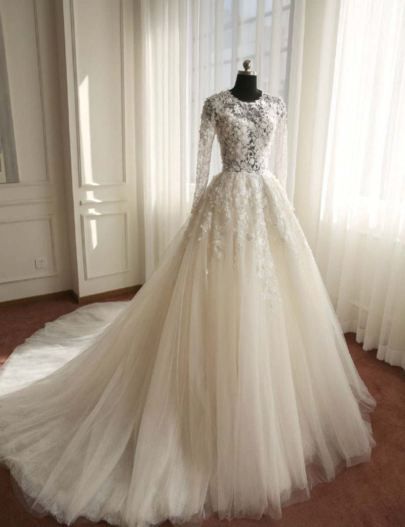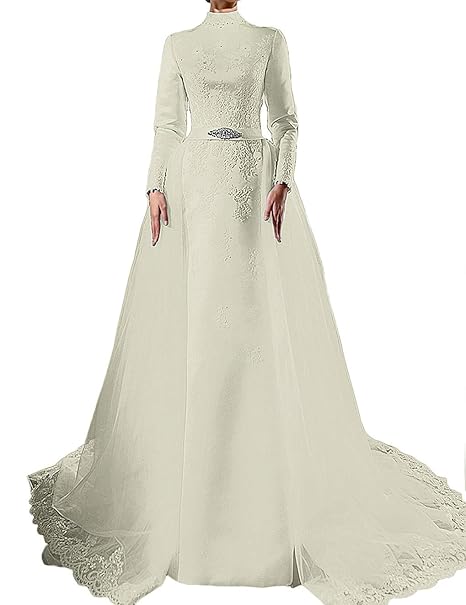 High Neck Wedding Dress Long Sleeve Wedding Dress Muslim Wedding Dress Lace Applique Wedding Dress Ivory Wedding Dress A Line Wedding Dress