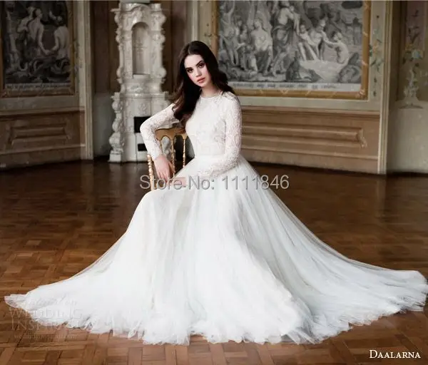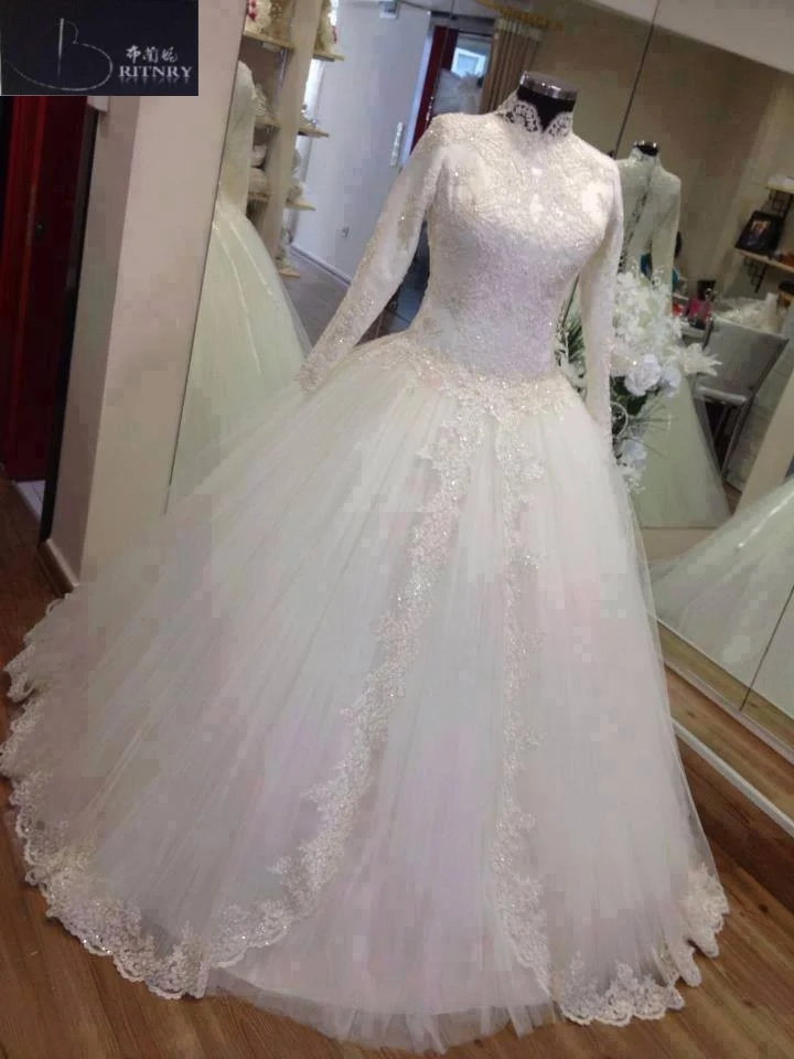 Us 195 0 High Neck Long Sleeve Muslim Wedding Dress Lace Tulle Long Train Bridal Dress In Wedding Dresses From Weddings Events On Aliexpress Com