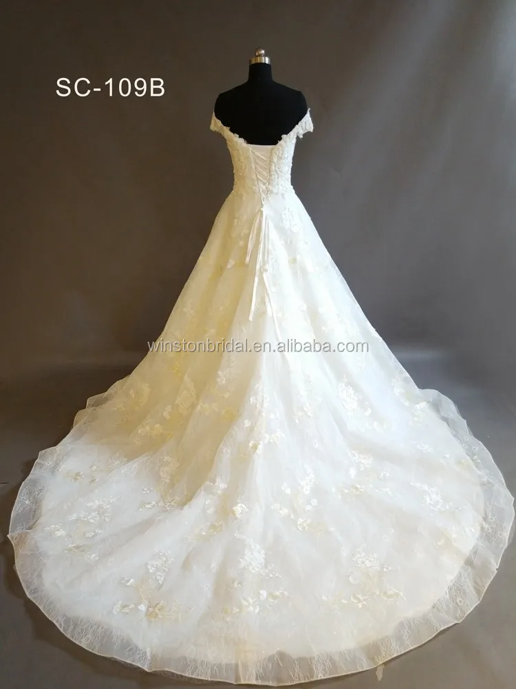 Hot Price Gorgeous Appliques Chapel Train Lace A Line